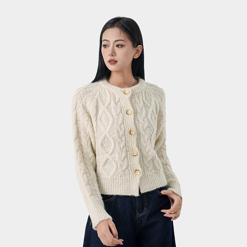 Zachovajte pás: vypasované kardigány, skrátené dĺžky alebo tie s opaskom zdôrazňujú prirodzené krivky. Štýly s gombíkmi, ktoré sledujú líniu tela bez naťahovania, sú lichotivé. Vyhnite sa príliš veľkým, neforemným úpletom, ktoré skrývajú pás, pokiaľ zámerne neštýlujete uvoľnený vzhľad.